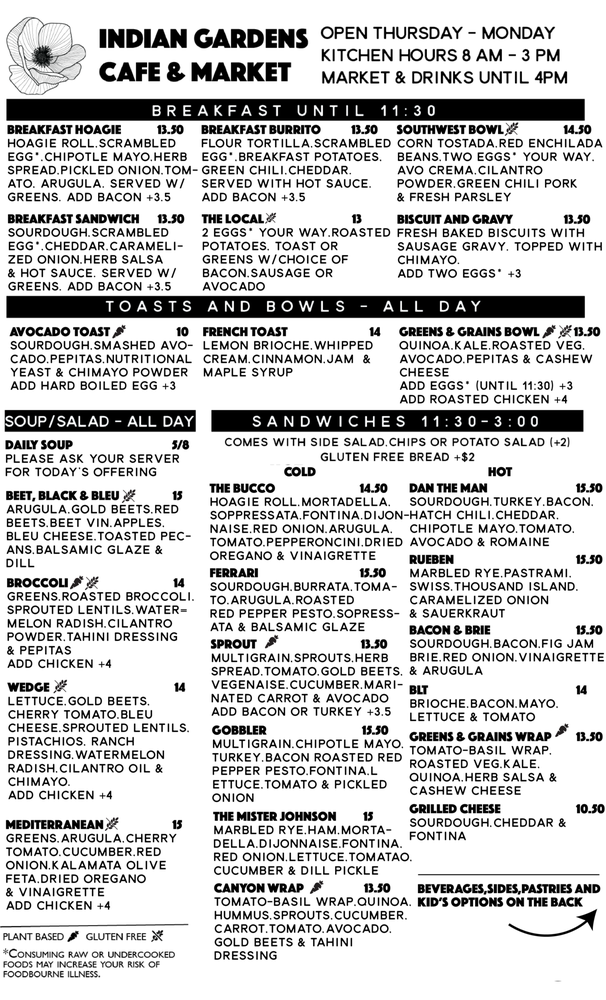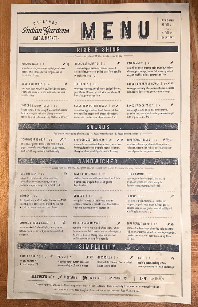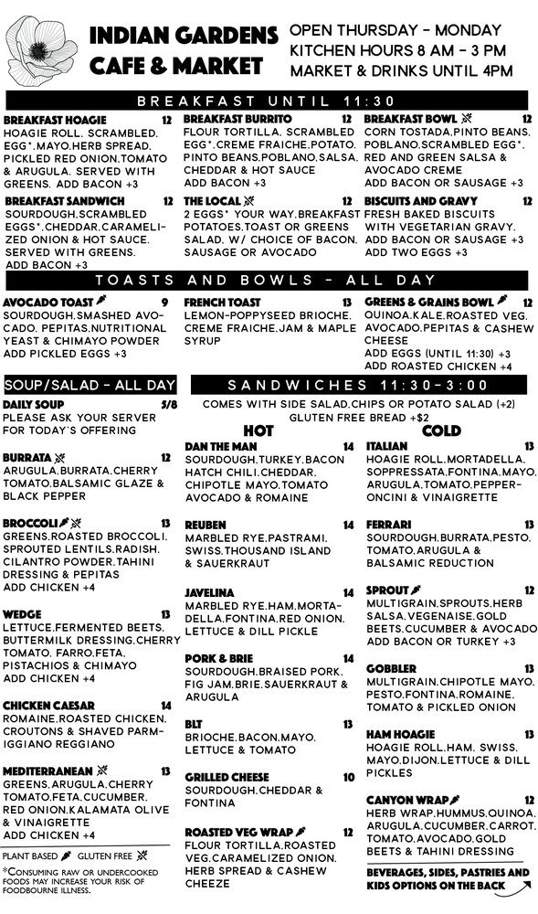 Indian Gardens Cafe & Market Menu (Update 2025)